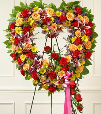 Heartfelt Tribute Floor Basket Arrangement- Red and White