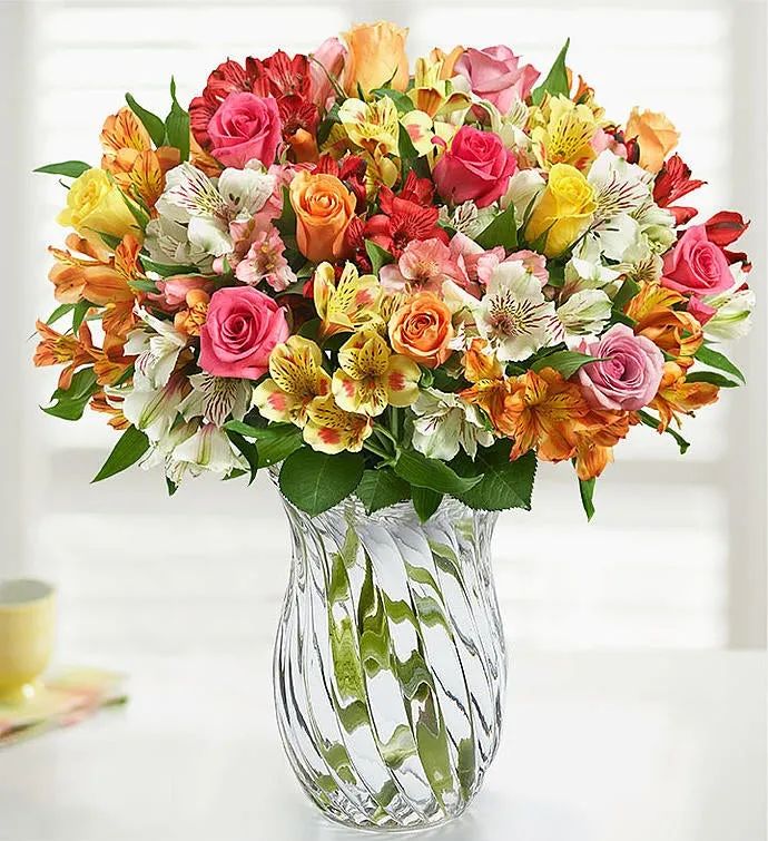 Put a smile on their face with our bright and lively bouquet. Filled with a rainbow of vibrant roses and Peruvian lilies, this colorful combination of blooms is a beautiful way to show someone you care.