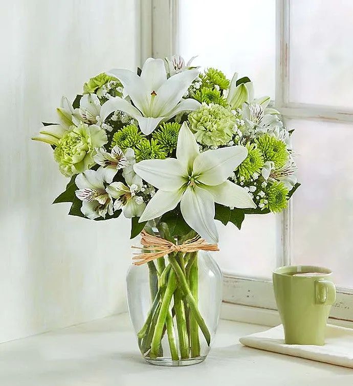 Bring some calm to someone special in your life. Inspired by the beauty of nature, our subtle, charming arrangement is hand-designed with the freshest blooms in delicate shades of green and white, arranged in a beautiful bouquet ready to be placed in a vase. Just one look will have them smiling and will reflect your thoughtfulness! *vase sold separately*