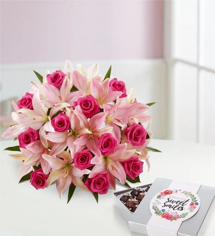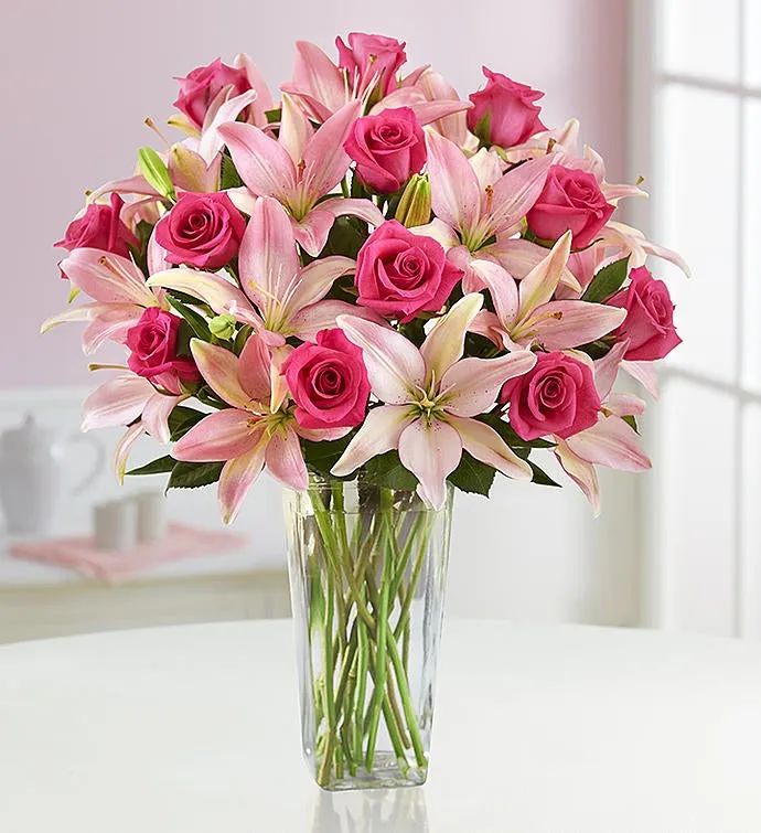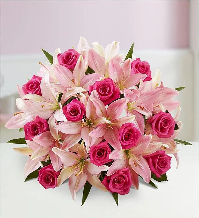 Magnificent is the only way to describe our all-pink bouquet. We’ve gathered one dozen long-stem roses with six, multi-bloomed Asiatic lilies for a gift that’s sure to make an impression.